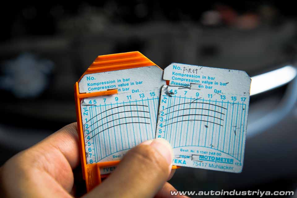 As seen during the compression test, cylinder 1 was at 14bar while the rest were lagging behind at the 13.5 range. Even with cylinders 2-3-4 lagging behind, the result of 13.5 to 14 bar on all cylinders means the engine is still in healthy condition despite being 10 years old. Do note the car used for testing also had its oil changed just 2000km before, so it would have also contributed to the healthy output on the test. The guys over at Blue Chem said that using the engine would still yield improvements over the baseline compression test.