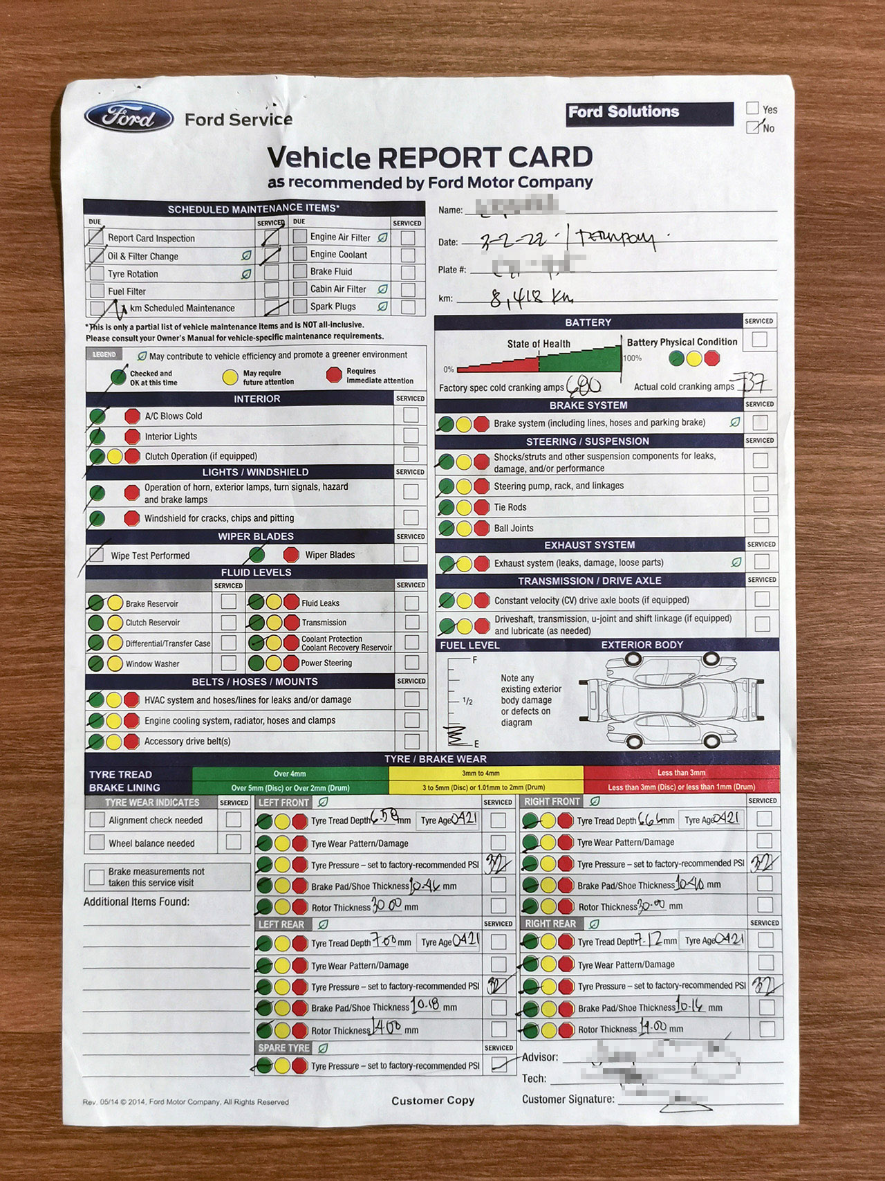 One key benefit that Ford customers get from having their vehicles serviced at a dealership is the Vehicle Report Card (VRC). Whenever a customer receives their keys after every service, the service department will give them a VRC, providing a full and comprehensive picture of the health status of their vehicle. Essentially, it's your car's Form 139 and tells you how your vehicle's important parts and systems are doing, and which ones may need to have work done and be replaced in the near future.