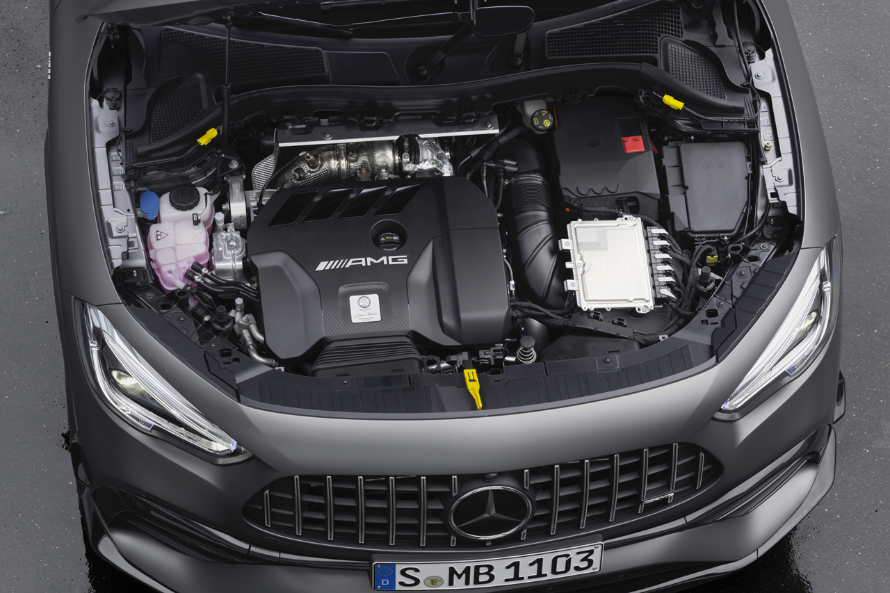 Powering the Mercedes-AMG GLA 45 is the same M139 2.0-liter turbocharged four-cylinder engine found in the CLA 45 and A45. It is available in two variants: GLA 45 and GLA 45 S – the latter being the more potent version. In standard form, the GLA 45 produces 387 horsepower. However, the S-variant packs an additional 34 horsepower - pushing the total output to 421 horsepower. Meanwhile, torque is rated at 480 Nm for the standard and 500 Nm for the S variant.
