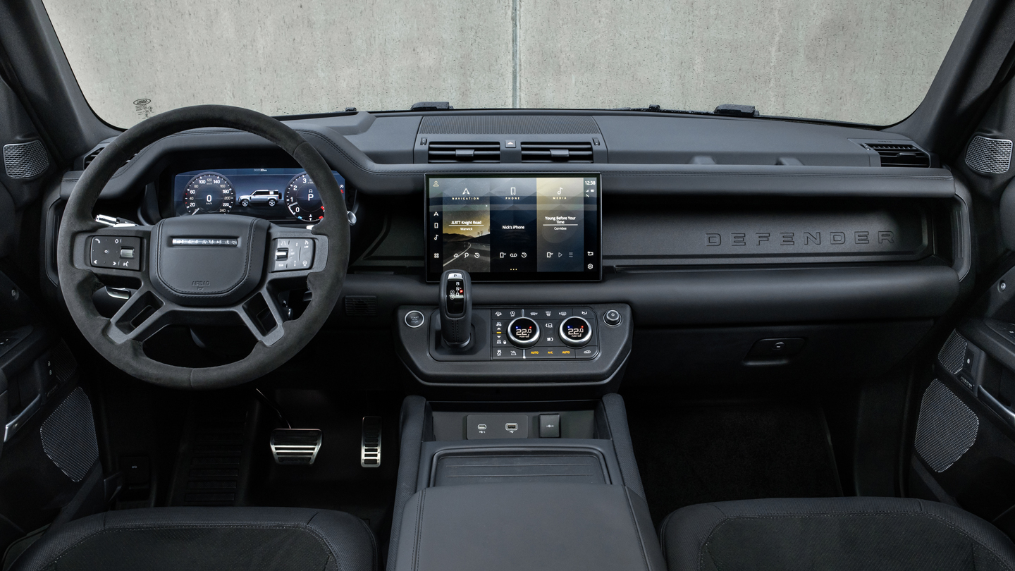Inside, it’s the same story as the exterior. However, Land Rover offers the model with an Ebony Windsor Leather upholstery with Miko Suedecloth and Robustec accents. A 10-inch infotainment system comes standard, but the 11.4-inch Pivi Pro infotainment system is available as an option. The larger infotainment system is also available on other Defender variants. Wireless charging now comes standard across the range.