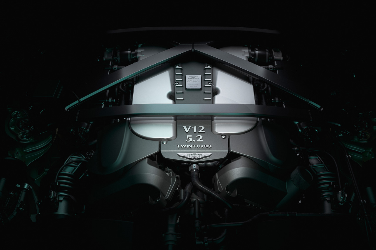 Billed as the fastest, fiercest, and most dynamically accomplished of all the Vantages, the new twelve-cylinder beast will serve as the final time a 5.2-liter twin-turbo V12 will be fitted on a Vantage. Cranking out an impressive 700 PS at 6500 rpm and 753 Nm of torque from 1800 to 6000 RPM, the V12 Vantage combines low-end muscular torque with searing top-end power. All that output is fed through an 8-speed automatic transmission with a mechanical limited-slip differential mounted to the rear of the car.