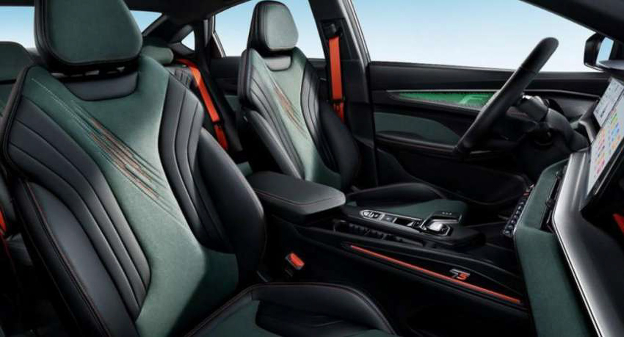 You'll be greeted with a black, green, and orange interior once you step inside the Binrui Cool. Geely did a nice touch on the design accents of the car, mainly on the front seats that look like they were scratched by Wolverine, and the seatbelts colored in orange that adds to the sporty appeal. Also, the “F” logos near the door handles and gear lever signify that this car is a step higher than the Binrui F Sport.