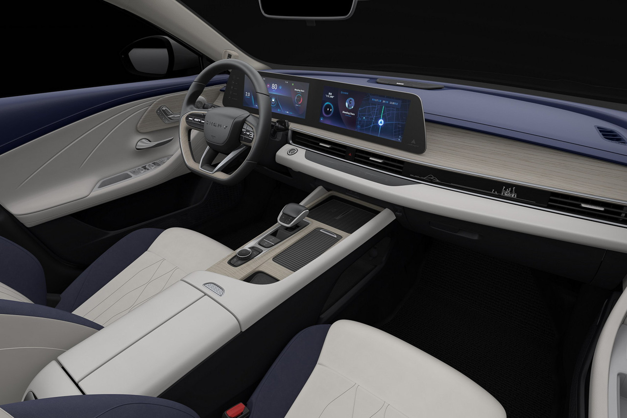 Like the exterior, Chery was also busy making sure the Arrizo 8's interior is as sophisticated and sleek. It gets a digital cockpit courtesy of two 12.3-inch displays – one serves as the instrument cluster while the other is the touchscreen infotainment system. Meanwhile, thin aircon vents, along with what appears to be a touch panel for the climate control system, give the sedan a minimalist design. As for the center console, there's an electro-mechanical gear selector, a drive mode selector, a center glove box with an integrated armrest, and what looks to be a charging pad for mobile phones.