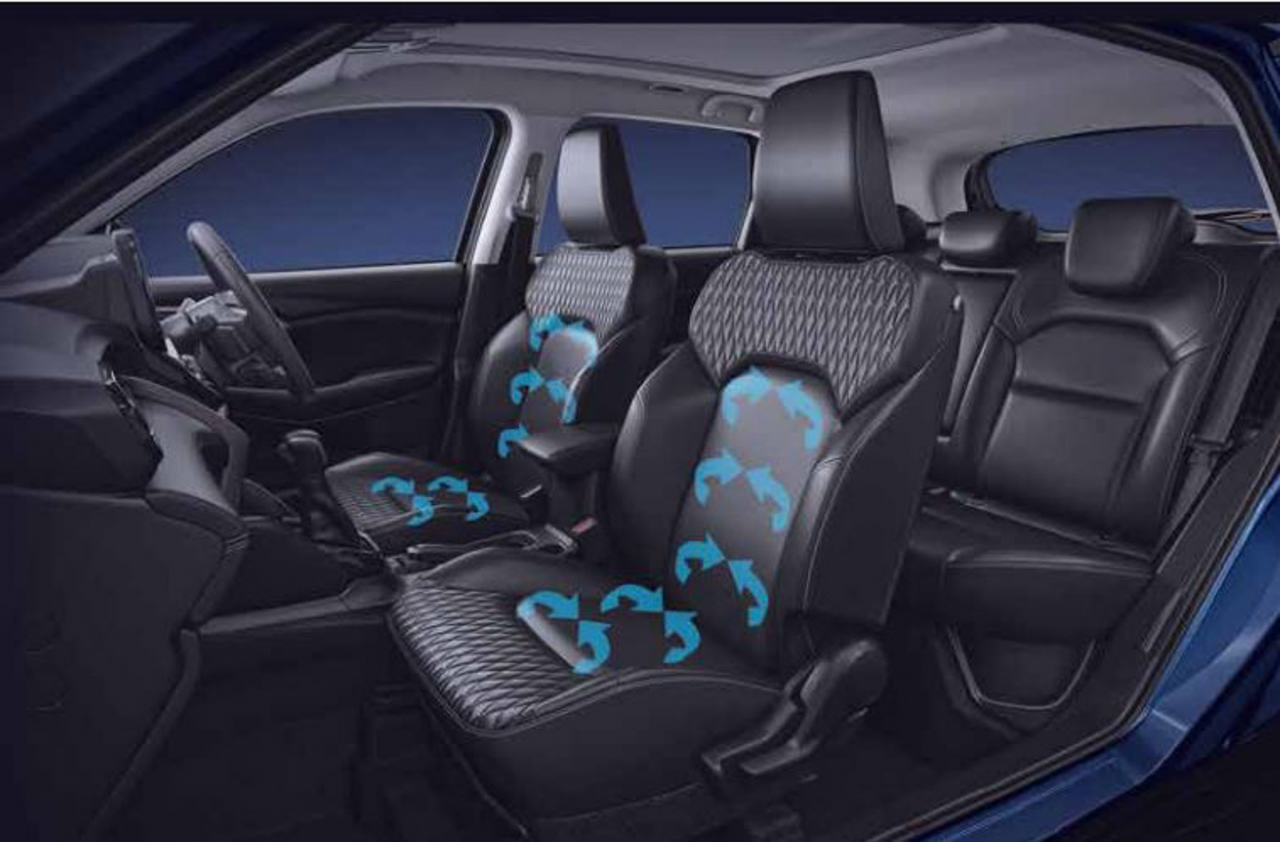 The all-new Grand Vitara shares the Hyryder's interior, albeit the Suzuki sports a dual-tone black and Bordeaux interior with silver accents on the dashboard and door panels for lower-spec models, and an all-black interior with champagne gold accents for the top-spec trims. It also has ventilated seats, a 360-degree camera, wireless charging, and a panoramic roof for top-of-the-line models like the Hyryder.