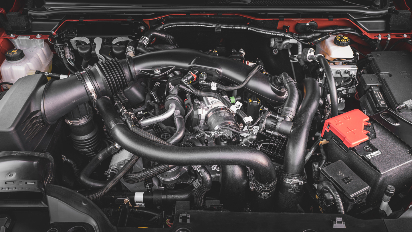 Starting with the most obvious, the Ranger Raptor gets a new 3.0-liter twin-turbo EcoBoost V6 that cranks out either 288 PS and 491 Nm of torque (Europe) or 392 PS and 583 Nm of torque (Australia and seelct markets). Unlike regular engines, the Ranger Raptor’s V6 is better thanks to a graphite-iron cylinder block. This makes the engine 75% stiffer than regular iron castings and is more fatigue resistant at elevated temperatures compared to aluminum and cast iron.