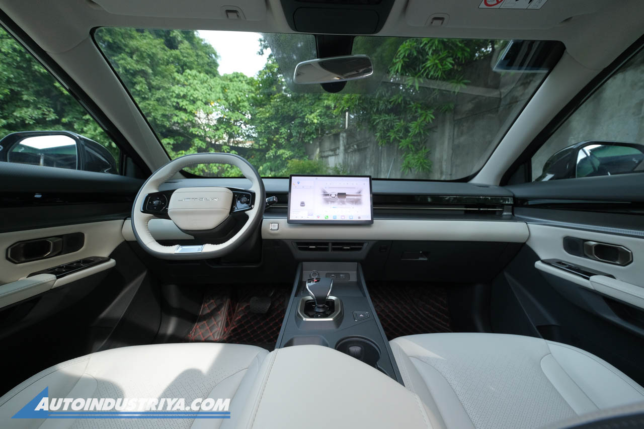 The rear doors also utilize a button for the voice command function. At night it also features puddle lamps in the form of the Jetour logo a nice touch in my opinion. The dashboard and doors are also lined with ambient lighting that can be controlled to preferred colors and can go with the beat of your tunes in the car. The steering wheel is also very futuristic as it employs a cursor/old mouse type of buttons. The left side controls what is set on your screen and the right side controls the audio.