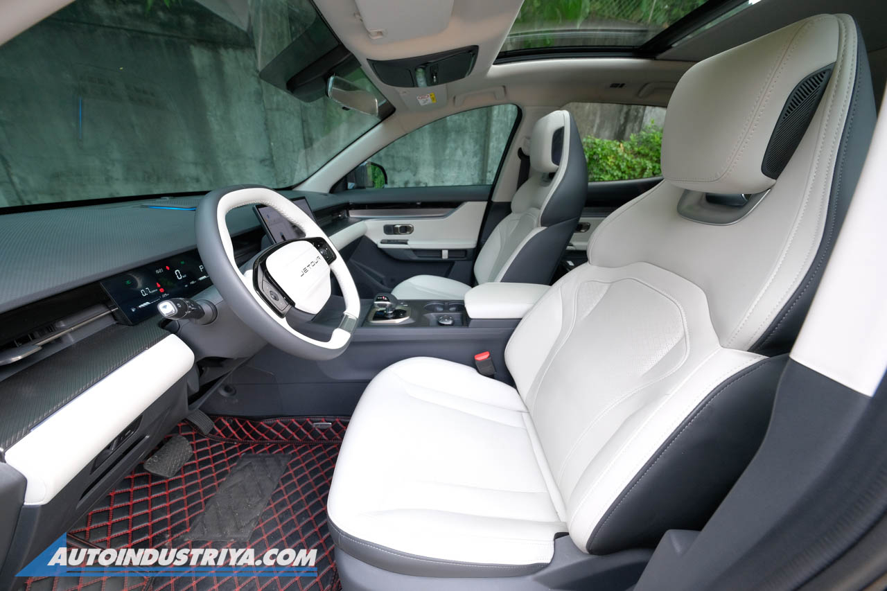 Stepping inside, you're greeted by a well-designed and inviting cabin. The interior features high-quality materials, soft-touch surfaces, and attention to detail, creating an upscale feel reminiscent of EVs (electric vehicles) we have driven earlier this year. The light-colored futuristic bucket seats offer a good balance of support and comfort. The second row also offers ample leg room even for my height at 5’11” and good headroom that also showcases the panoramic sunroof.