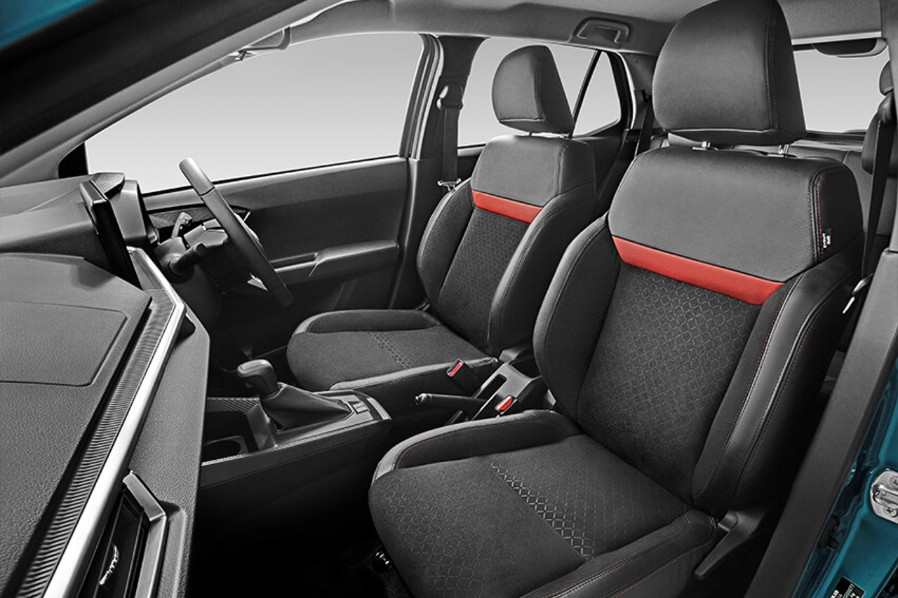 High-grade variants are equipped with a free-standing 9-inch touchscreen infotainment system, a digital air-conditioning system, a push-button start, as well as a leather-wrapped steering wheel. Other available cabin amenities present include contrast stitching on the leather-fabric seats, speed-sensitive door locks, and a 7-inch digital instrument cluster.