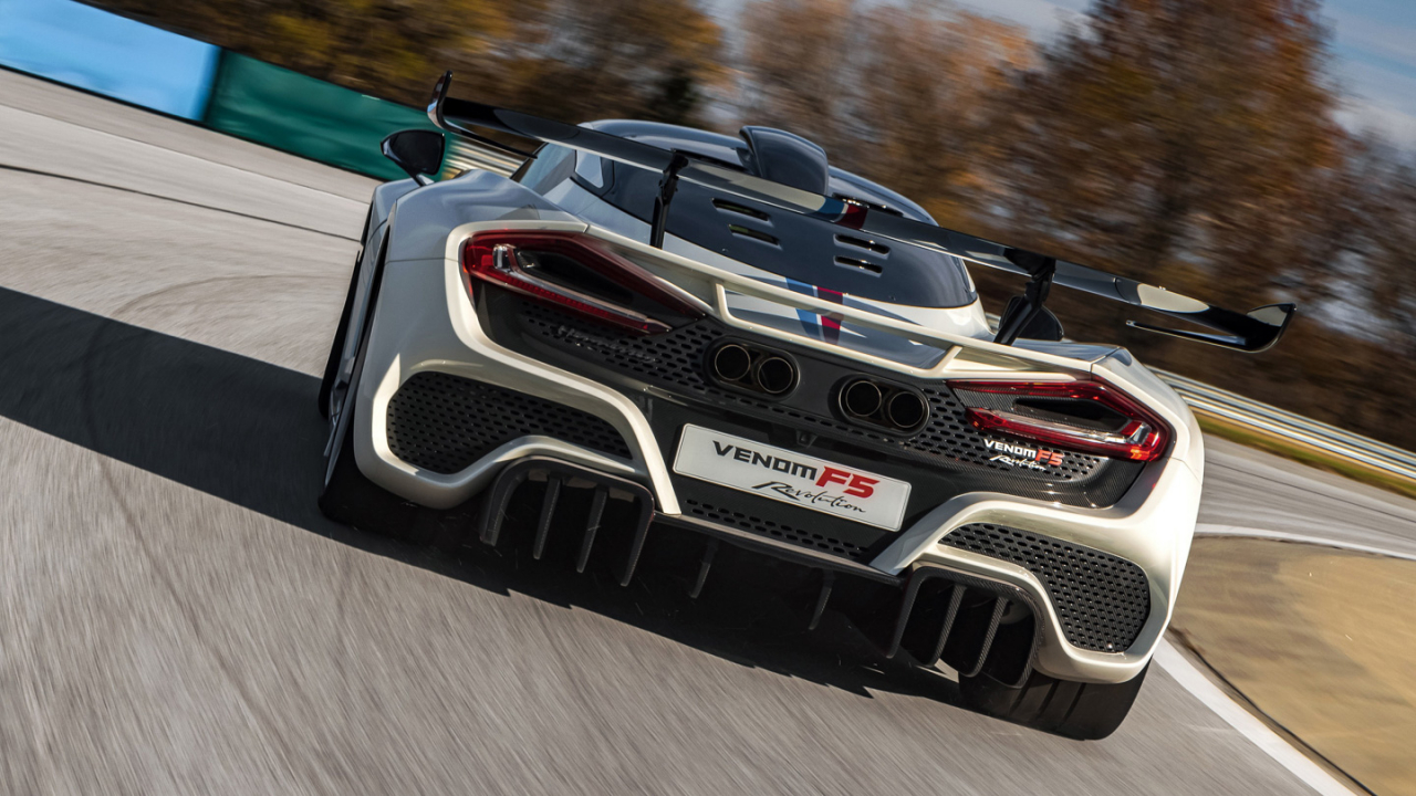 Since the F5 Revolution is built for the track, expect a lower top speed than the road-going F5; but only just. While there are no official top speed figures, the key takeaway here is the amount of downforce the F5 Revolution can make from its full-width rear wing. According to Hennessey, the wing produces 800 pounds of downforce at 300 km/h and over 1,400 pounds at 400 km/h. This means the F5 Revolution is still capable of going past 400 km/h even if its bodywork was altered to make it stick to the ground.