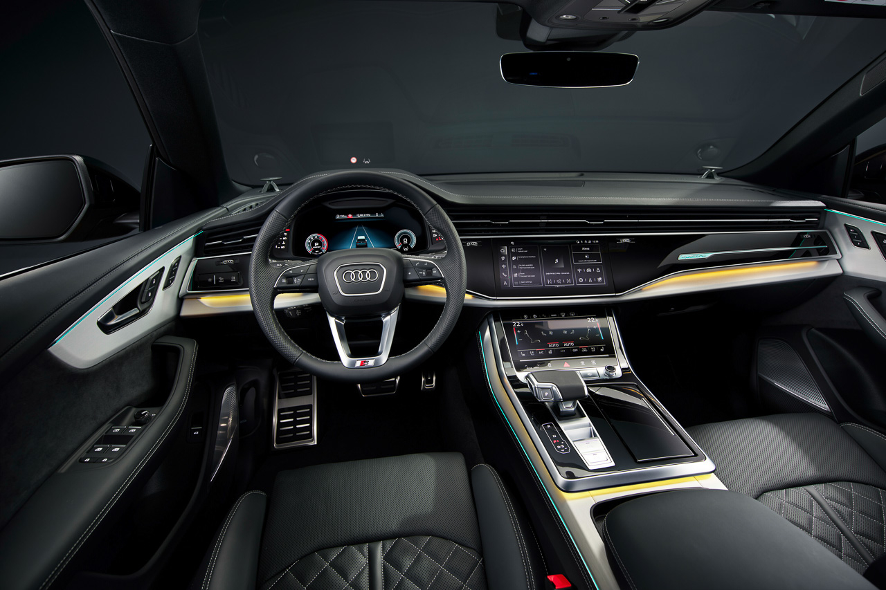 Less is more for Audi, which is why it has systematically reduced the decorative elements for an even more puristic design. What the marque added is a new exhaust system and the two-dimensional rings that debuted in the Q8 e-tron. For the wheel range, customers have a choice of five new wheel designs, with sizes ranging from 21 to 23 inches.