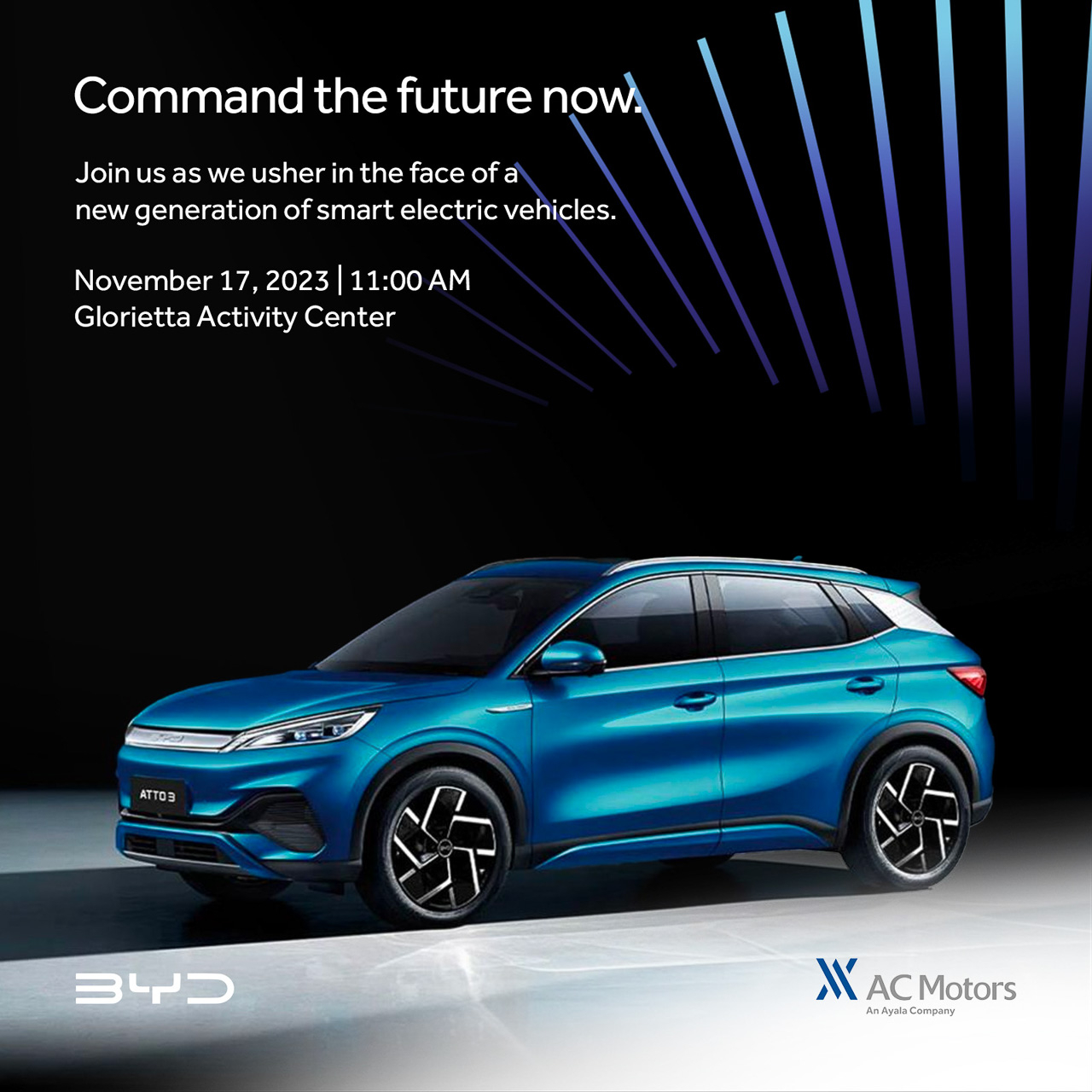 On November 17, 2023, BYD Philippines will be launching the Atto 3 EV. The reveal will happen at 11:00 AM at the Glorietta Activity Center in Makati City. This means the public will be able to witness the official launch of BYD's latest EV offering in the country.
