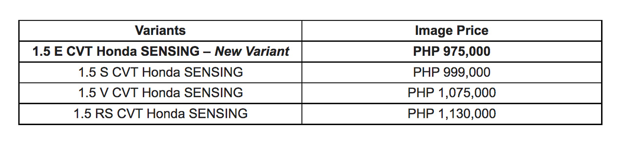 Price starts at PHP 975,000 and all City variants will come with Honda Sensing