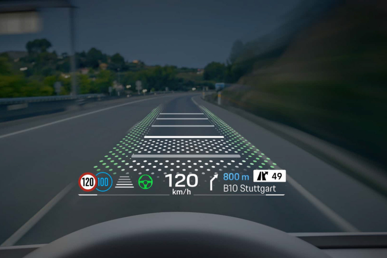 Porsche said its new head-up display projects data approximately 33 feet ahead of the driver on what corresponds to a gigantic 87-inch display.