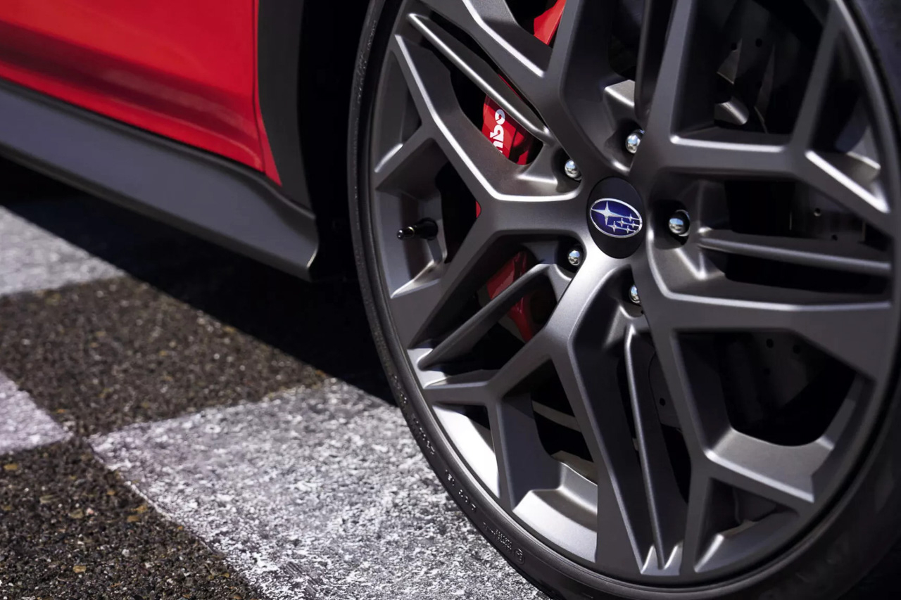 In front of the improved braking system are new 19-inch wheels finished in Satin Gray. They are then wrapped in Bridgestone Potenza S007 tires that measure 245/35/R19. Unlike the regular tires, Subaru says the new tires will have increased grip in both wet & dry conditions, as well as provide better braking performance.