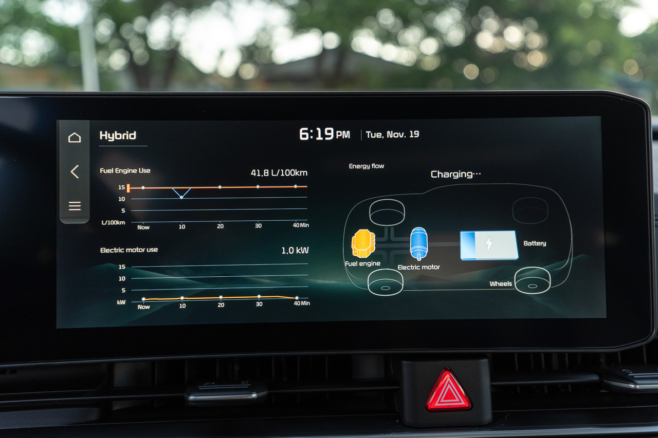 Under the hood of the Carnival Turbo HEV is a 1.6L turbocharged four-cylinder engine that’s assisted by an electric motor. The result is a total system output of 245 PS and 367 Nm of torque. Compared to the turbo-diesel variant, the Turbo HEV makes 43 PS more but has 73 Nm less pulling power. Power is then sent to the front wheels via a 6-speed automatic gearbox.