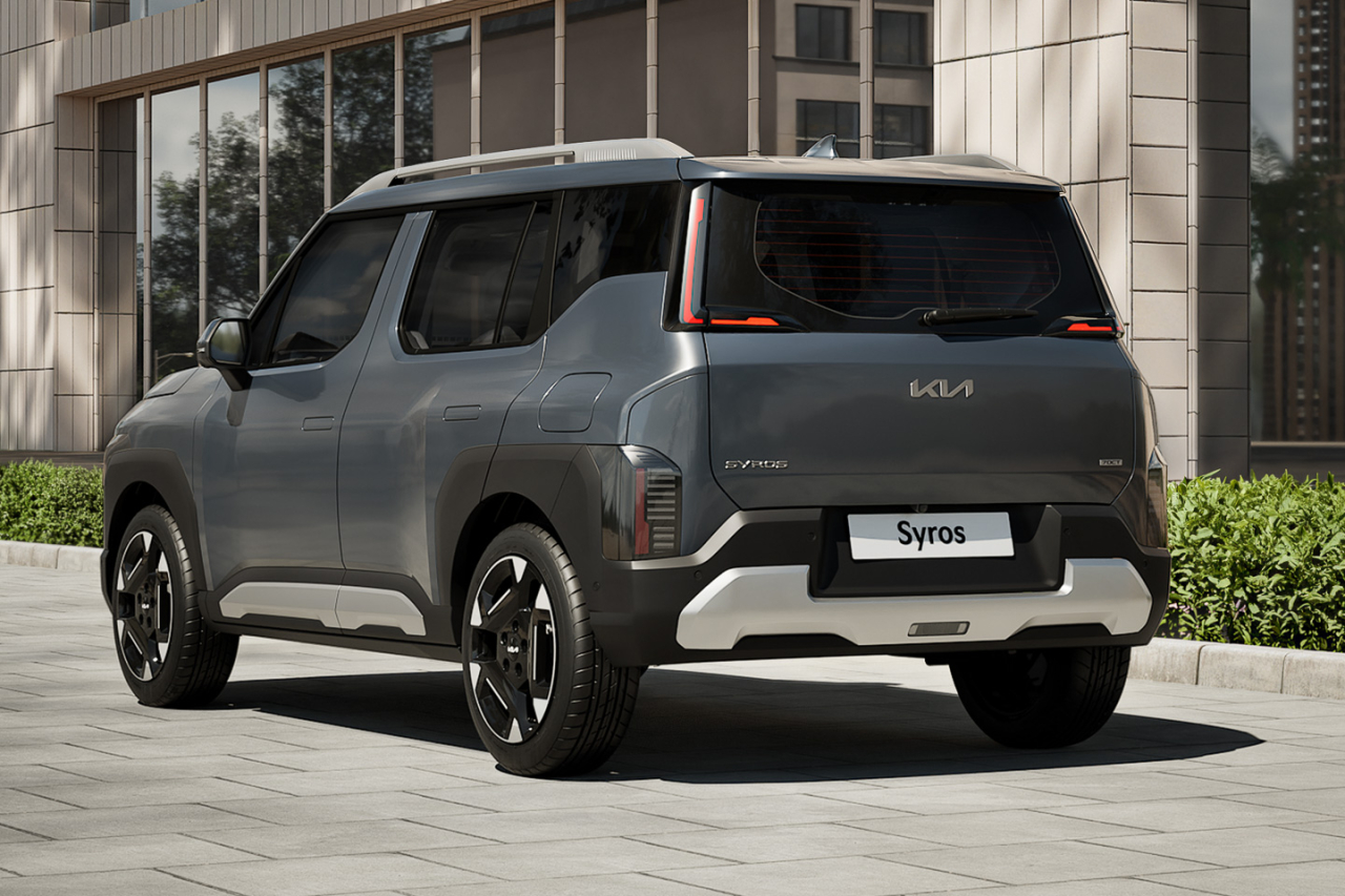 Like the Tasman pickup truck, Kia decided to push the vertical headlights to the sides of the Syros. Despite its diminutive size at 3995 mm long, the Syros has an upright stance with a high squared shoulder line, making it look like a scale model of the EV9. Interesting design features include the low-mounted vertical taillights, the L-shaped light bar at the back, bulging fenders, and the kinks on the door windows.