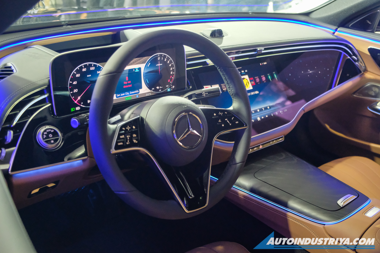 The E350e gets a 12.3-inch digital instrument panel along with a 14.4-inch central touchscreen display. The front passenger even gets their own 12.3-inch touchscreen infotainment media display. The electrified E-Class also includes a 17-speaker sound system from Burmester with Dolby Atmos for that added audio fidelity.