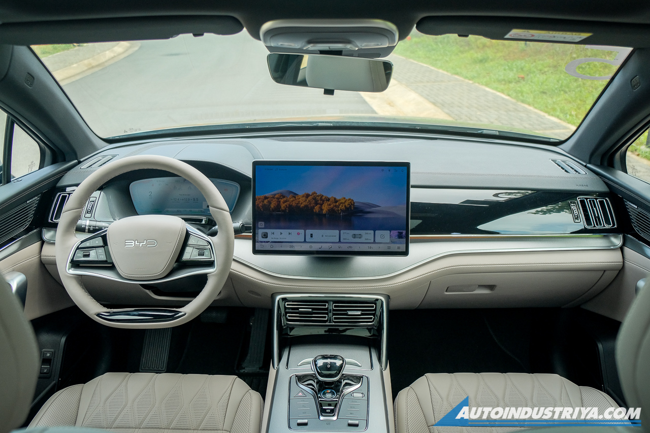 Hop inside, and the Tang PHEV welcomes occupants into a spacious and fully equipped cabin. In front of the driver is a 12.3-inch instrument cluster, while the center dashboard comes with a 15.6-inch touchscreen infotainment display. It supports wireless Apple CarPlay & Android Auto and comes with a 12-speaker Dynaudio sound system.