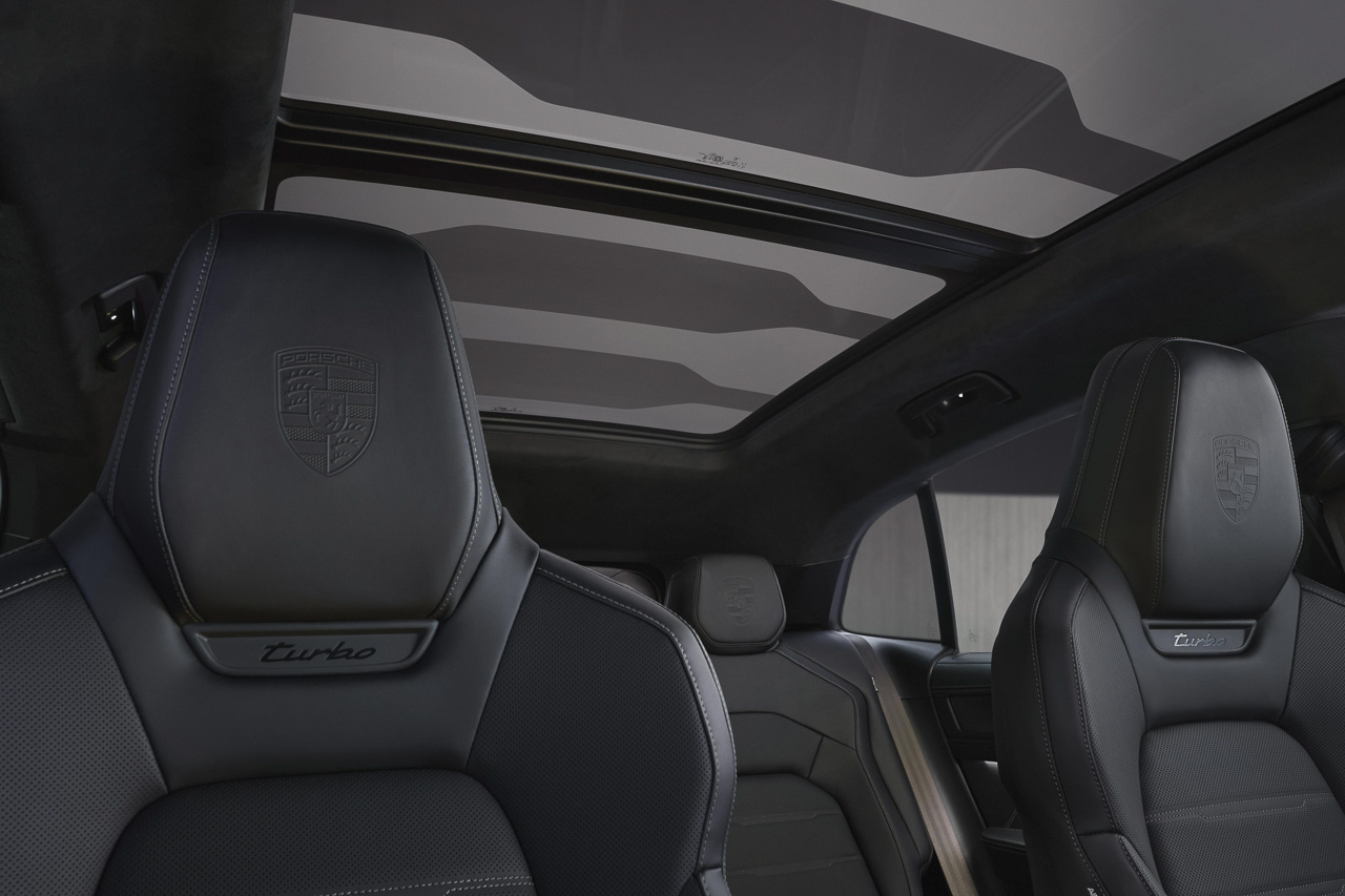 Design-wise, the all-new Porsche Cayenne Electric combines the brand's signature proportions with a new design language. It comes with slim Matrix LED headlights, contoured wings that are typical of Porsche designs, frameless doors, sleek side skirts, a new LED light strip that serves as the Cayenne Electric's taillights, and a central light bar with the illuminated Porsche lettering for all to see. Exclusive only to the Turbo version is the Turbonite finish on the Porsche crests, alloy wheel emblems, and the side window trims for that sleeker appearance.