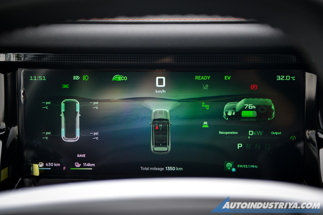 Power is sent to the wheels via a dedicated hybrid transmission (DHT), which comes with selectable drive modes: Eco, Sport, Normal, and Snow.