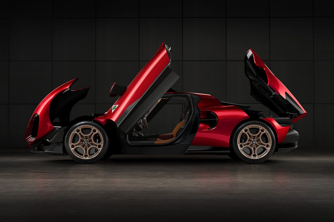 Buyers have the option of getting the 33 Stradale with a V6 twin-turbo or a battery-electric powertrain