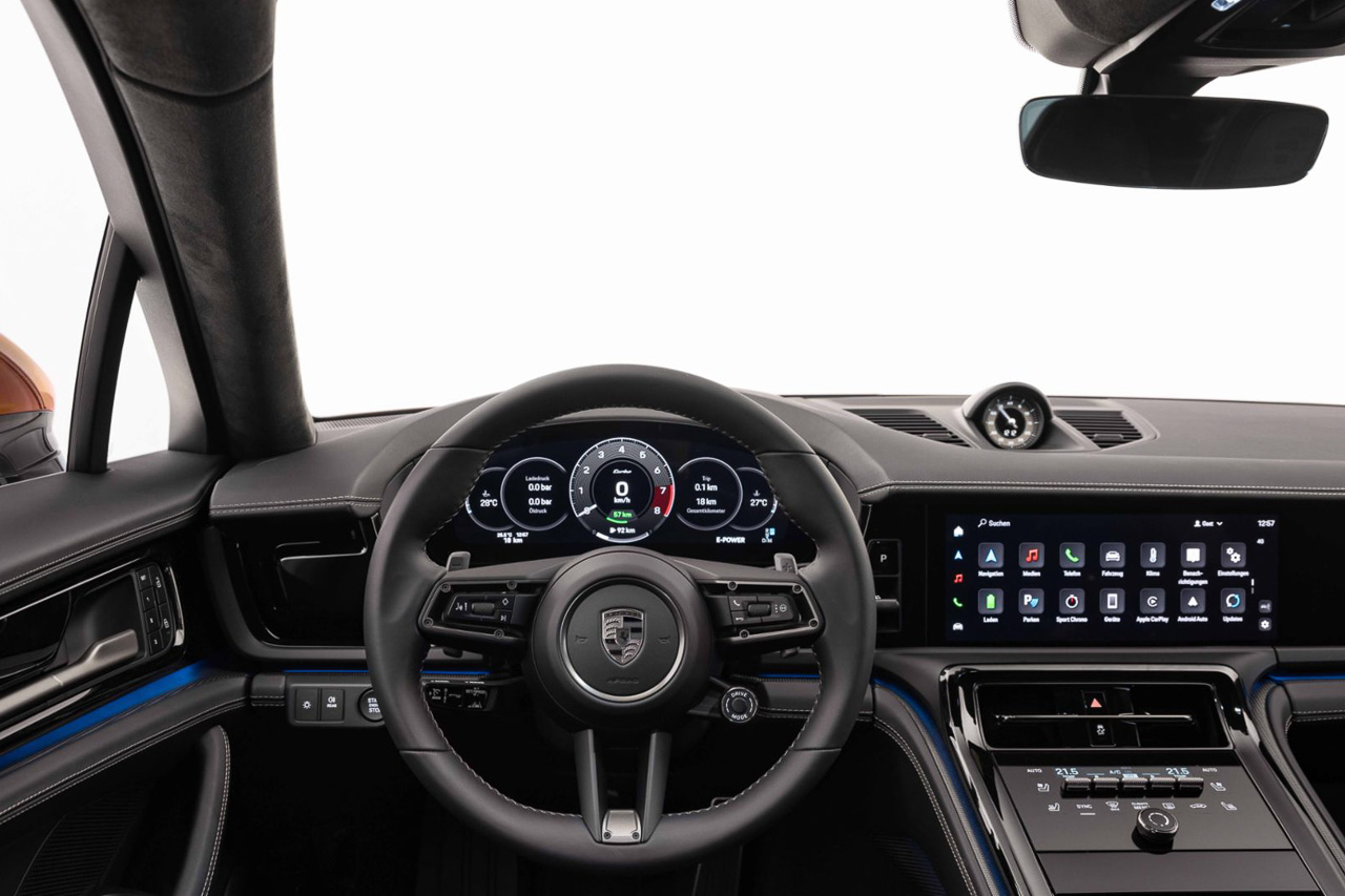 Pop the doors open and the 2024 Panamera invites occupants into a triple-screen dashboard. Both the touchscreen infotainment and instrument panel measure 12.6 inches in size and are joined by a new (optional) 10.9-inch touchscreen for the front passenger.