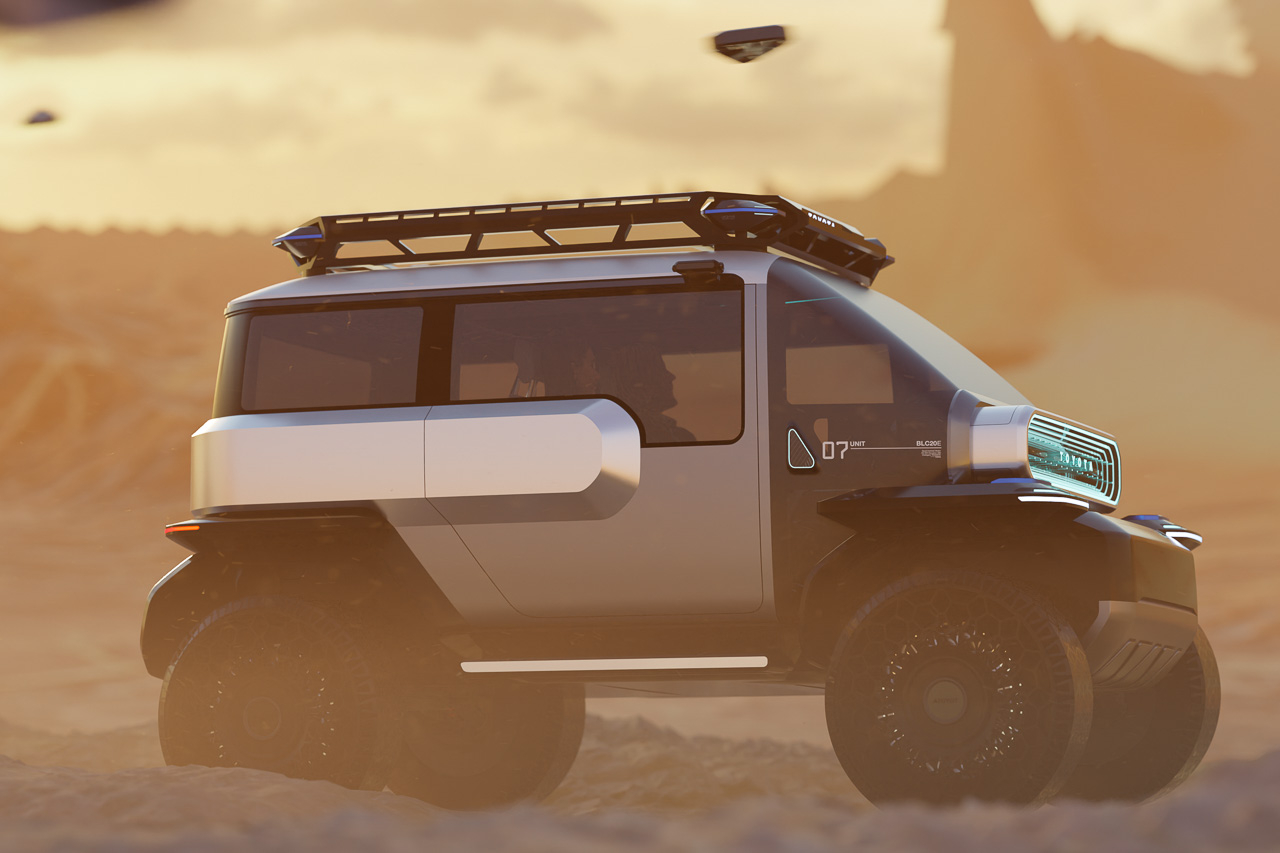 Should it encounter an extra-terrestrial who can read the alphabet, it has ‘TOYOTA’ written on its nose, so it knows this thing comes from Earth. For safety, the BLC has an array of cameras, lidar/radar sensors, and a split tailgate configuration in the back (to accommodate your space haul). It uses adjustable spaceframe seats and M.O.L.L.E. (Modular Lightweight Load-carrying Equipment) interior panels that adapt to any adventure.