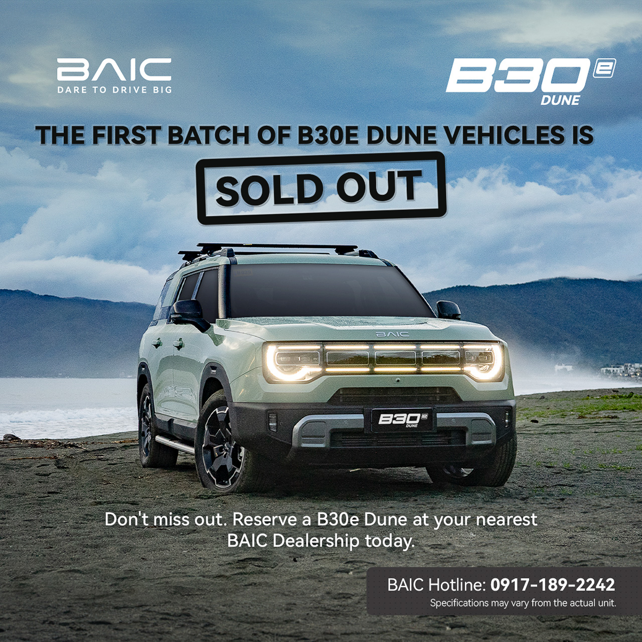 If you're looking to buy a brand-new B30e Dune soon, you can now visit or contact your preferred BAIC dealership to inquire about a test drive.
