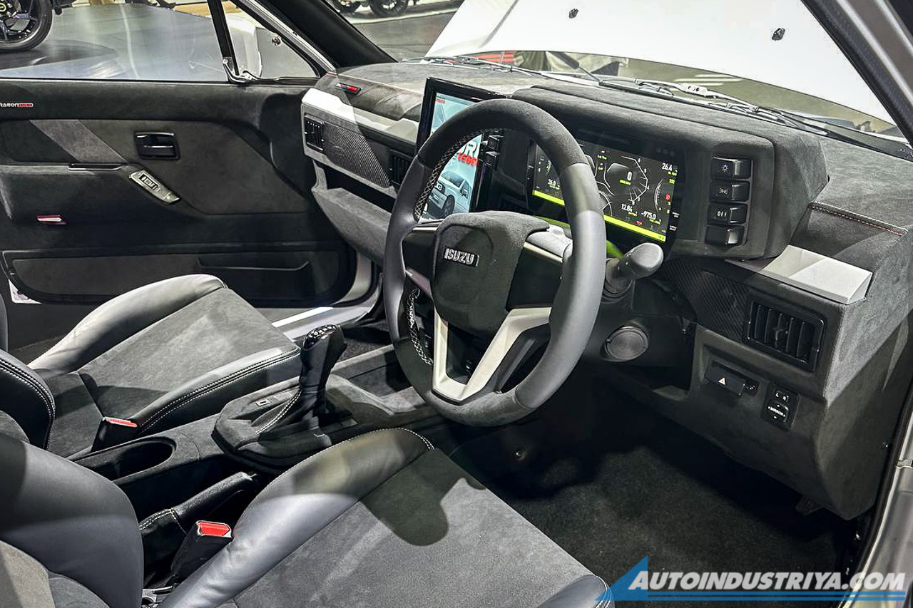 Using a 1988 Isuzu TFR Space Cab as a base, the concept is painted in what looks to be a matte gray finish and sits low to the ground like a drag diesel pickup truck. The old school headlights and taillights have been replaced with LED units which make for a cleaner and more futuristic appearance. It also comes with black alloy wheels wrapped in low-profile tires, a tailgate spoiler, LED daytime running lights, and gas struts to keep the hood open.