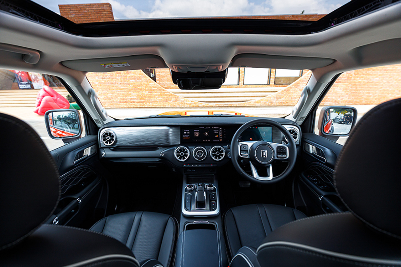 Hop aboard and those familiar with the gasoline-powered Tank 300 will find a similar-looking cabin inside the diesel-driven Tank 300. These include a pair of 12.3-inch digital screens that serve as the instrument cluster and touchscreen infotainment system, a power-adjustable driver's seat, an Infinity 8-speaker sound system, Type A and Type C USB ports for the front passengers, an electronic gear shifter, steering wheel paddle shifters, and Apple CarPlay/Android Auto connectivity.