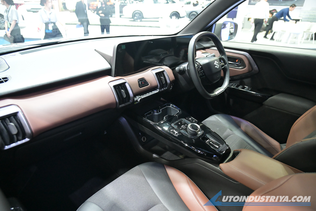 Step inside, and the e Vitara has a two-tone interior that's finished in black & brown, resulting in a more sophisticated look. It also comes with SUV-inspired elements, with the large aircon vents and a commanding driving position. It also has plenty of niceties such as two-tone leather-fabric seats, LED ambient lighting, piano black accents, a pair of digital displays (one is the instrument cluster, the other the touchscreen infotainment system), and climate control.
