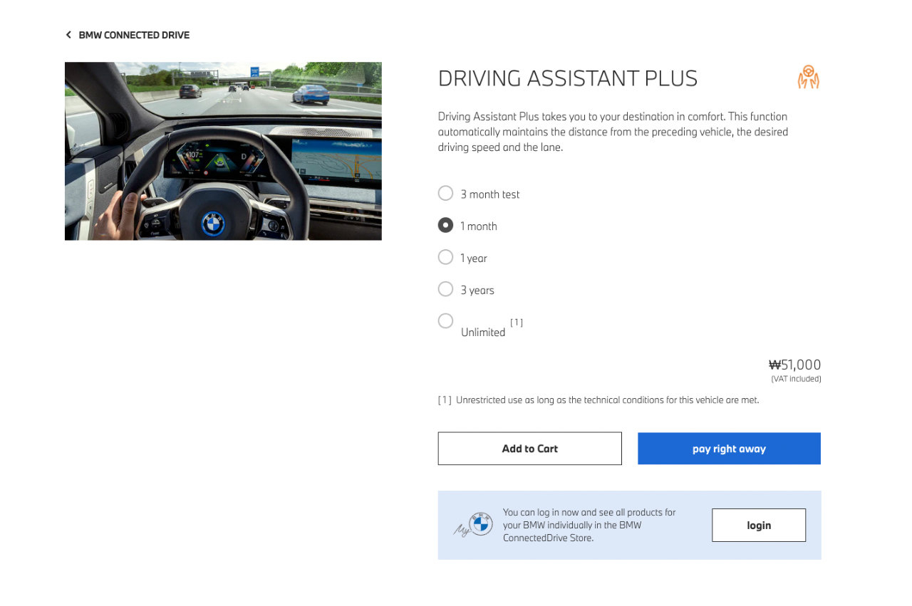 The BMW ConnectedDrive store is a portal where BMW owners can acquire technology for their cars or SUV. Here, the customer can choose and pick what features to pick and how long they wanna pay for it. The customer will also be asked to make a profile and enter a mode of payment for the purchases.