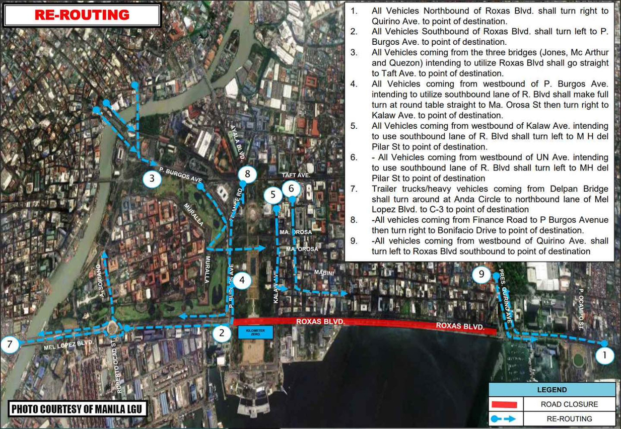 -All Vehicles coming from the three bridges (Jones, Mc Arthur, and Quezon) intending to utilize Roxas Boulevard shall go straight to Taft Avenue to point of destination.