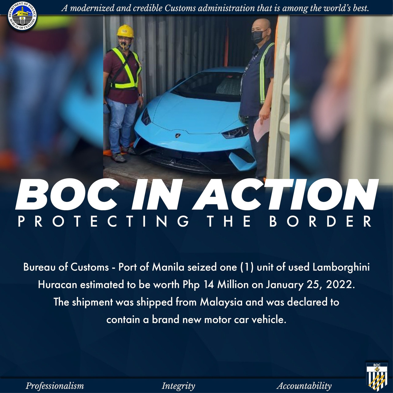 BOC estimates that smuggled Lamborghini Huracan is valued at PHP 14 million