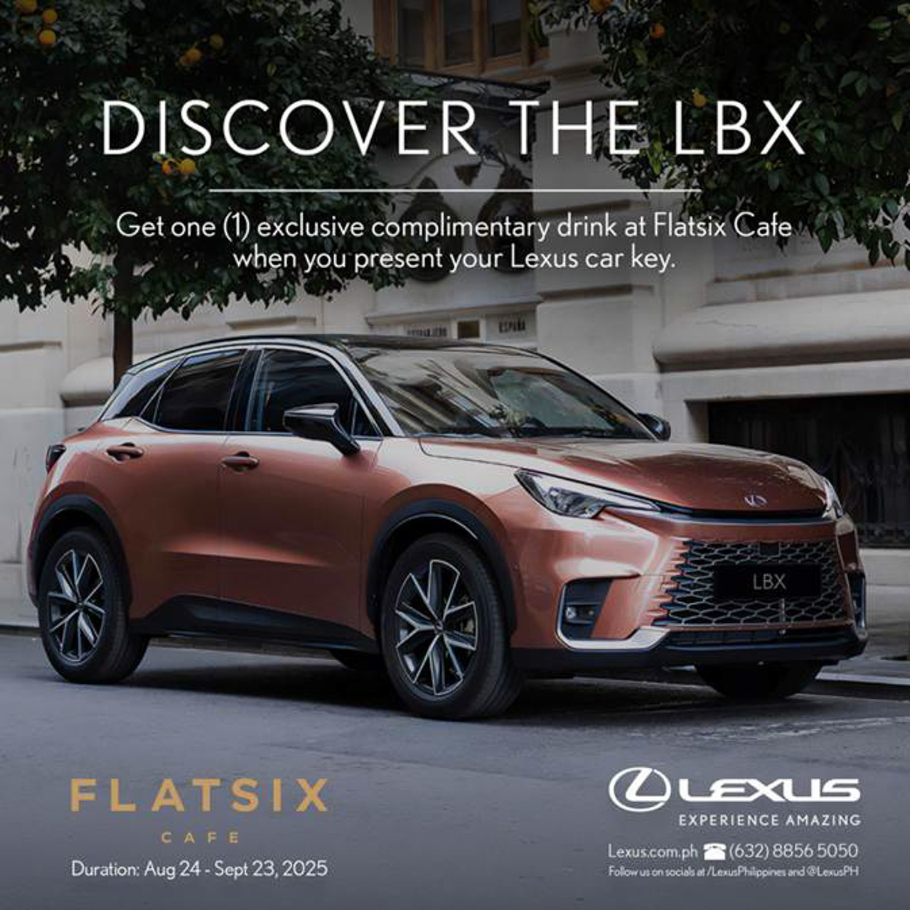 Curious to see the Lexus LBX up close? Visit the Flatsix Cafe at 131 Katipunan Avenue at Brgy. St. Ignatius, Quezon City to get a better look at the LBX.