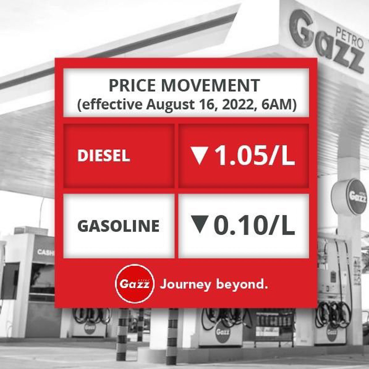Aside from diesel, gas and kerosene will go down PHP 0.10 and PHP 0.45, respectively