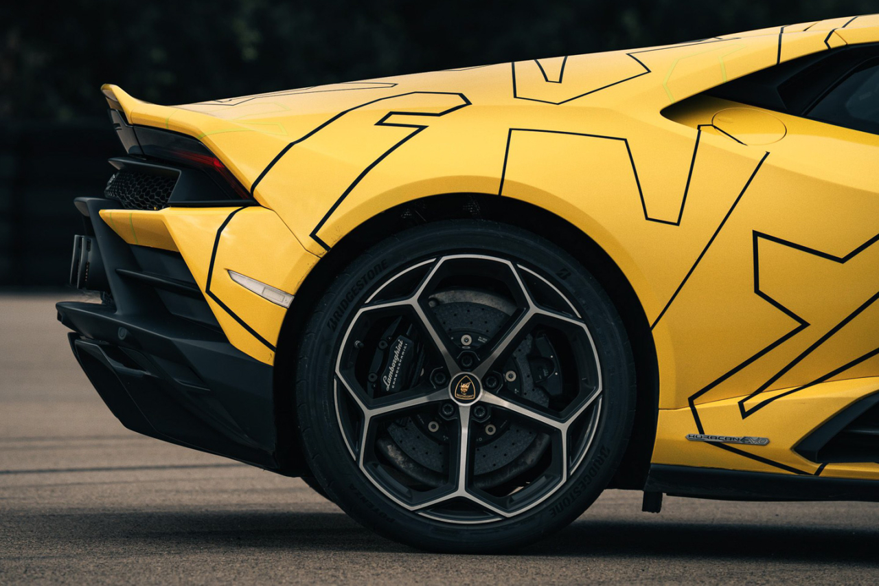 According to Lamborghini, the Active Wheel Carrier system offers up to 6.6 degrees of toe adjustment. But more importantly, for handling and aesthetic purposes, the system could alter the car's camber by up to 2.5 degrees on the positive end, and up to negative 5.5 degrees. These can be done automatically by the car as you go flat out around the race track.
