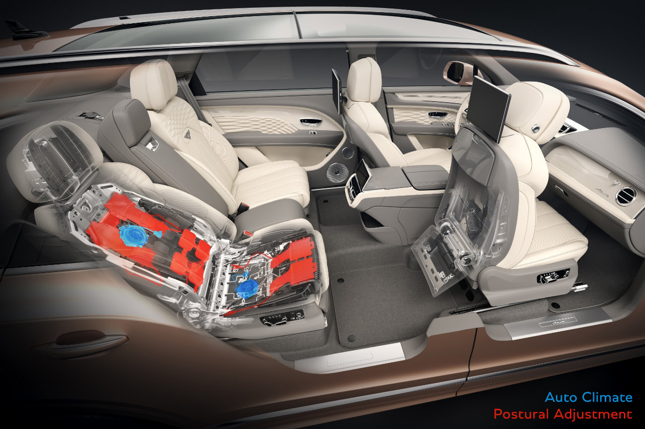 Being the most technologically advanced seats made by Bentley, the system also has Postural Adjustments. The adjustable profiles help relieve fatigue and correct in-car posture. This is achieved by complex algorithms measuring contact pressure between the body and the seat. This will allow the seat to morph and shape itself to deliver maximum comfort. Adjustable leg and footrest also help to complete the total ride comfort of the SUV.