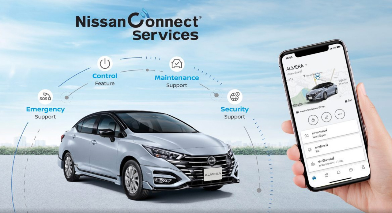 First revealed for the Thai-spec 2024 Nissan Almera, the new feature allows users to connect their mobile phones to the Almera’s features, receive alerts from the vehicle, keep track of car maintenance intervals, and automatically contact emergency services should they be needed.