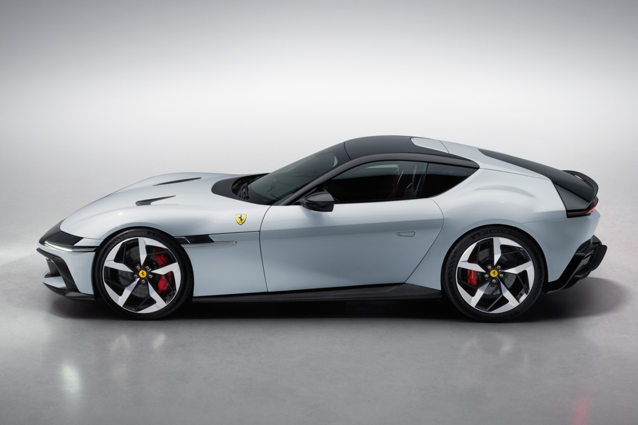 The 12Cilindri debuted the new Ferrari Centro Stile design language with the way they treated the “masked” front end, paying tribute to the Ferrari 365 GTB/4 Daytona coupe. That design has since been carried over by the flagship F80.
