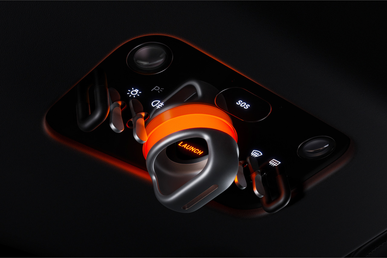 Some of you might be wondering where the rest of the in-car controls, like the headlights, foglights, and even the launch control, are. Well, instead of putting those functions in a touchscreen, Ferrari put them above the driver. That's right, the buttons for S.O.S., headlights, park lights, and even launch control are all placed on the ceiling, which gives the Luce EV a cockpit-like design. We can only imagine the lucky customers who will be able to press the launch control button before setting up for a quick quarter-mile sprint.