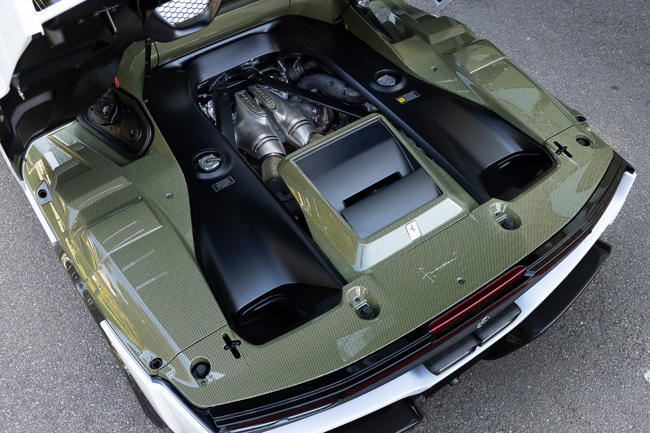 At the heart of the Ferrari SC40 is the 296 GTB's powertrain. Its 3.0L twin-turbo V6 cranks out 663 PS and 740 Nm of torque. But thanks to an electric motor and a high-voltage 7.45 kWh battery pack, the SC40 generates a combined 830 PS at 8000 rpm. The engine is paired to an eight-speed dual-clutch gearbox that allows the SC40 to sprint from 0 – 100 km/h in 2.9 seconds and reach a top speed of over 330 km/h.