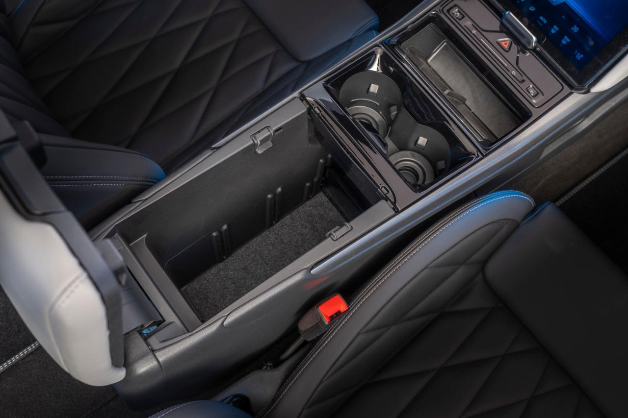 While we can admire the exterior of the Explorer EV all day, it's time to check out the cabin which Ford made sure can carry plenty of items. Starting with the rear cargo space, Ford says that with the rear seats up, the Explorer EV can carry 470 liters worth of luggage. Meanwhile, the 17-liter center console between the driver and front passenger can store a 15-inch laptop to keep it safe from prying eyes.