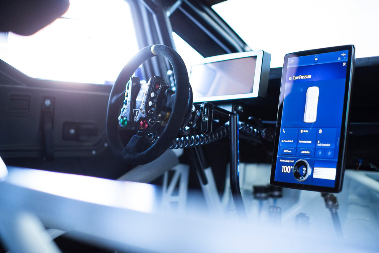 Drivers can control the Supervan's electric powertrain and setup via the onboard tablet-like touchscreen. Aside from the usual infotainment features, the screen allows drivers to choose from several drive modes that tailor the Supervan's torque maps, regenerative braking, and control responses. These include Road, Track, Drag, Drift, and Rally.