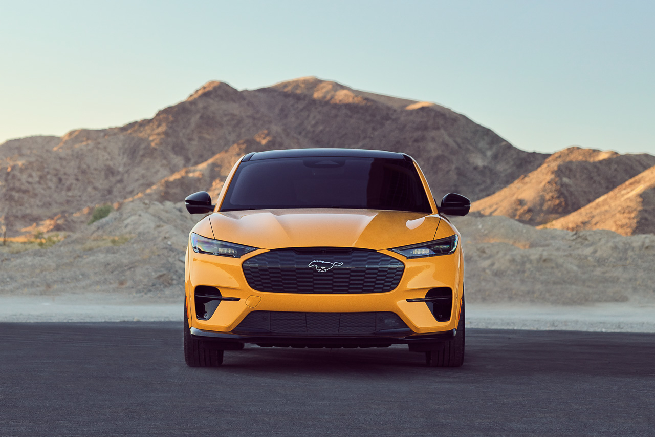 Up next is the Mustang Mach-E GT which could be the top-of-the-line offering. It only has a range of up to 490 km but makes more power thanks to what might be a pair of electric motors that dish out a combined 358 kW or 486 PS. Its top speed is rated at 200 km/h while its curb weight is listed as 2,281 kg. It also has the same dimensions as the Mach-E Premium but unlike that particular variant which gets 19-inch alloy wheels, the Mach-E GT comes with bigger 20-inch alloys.