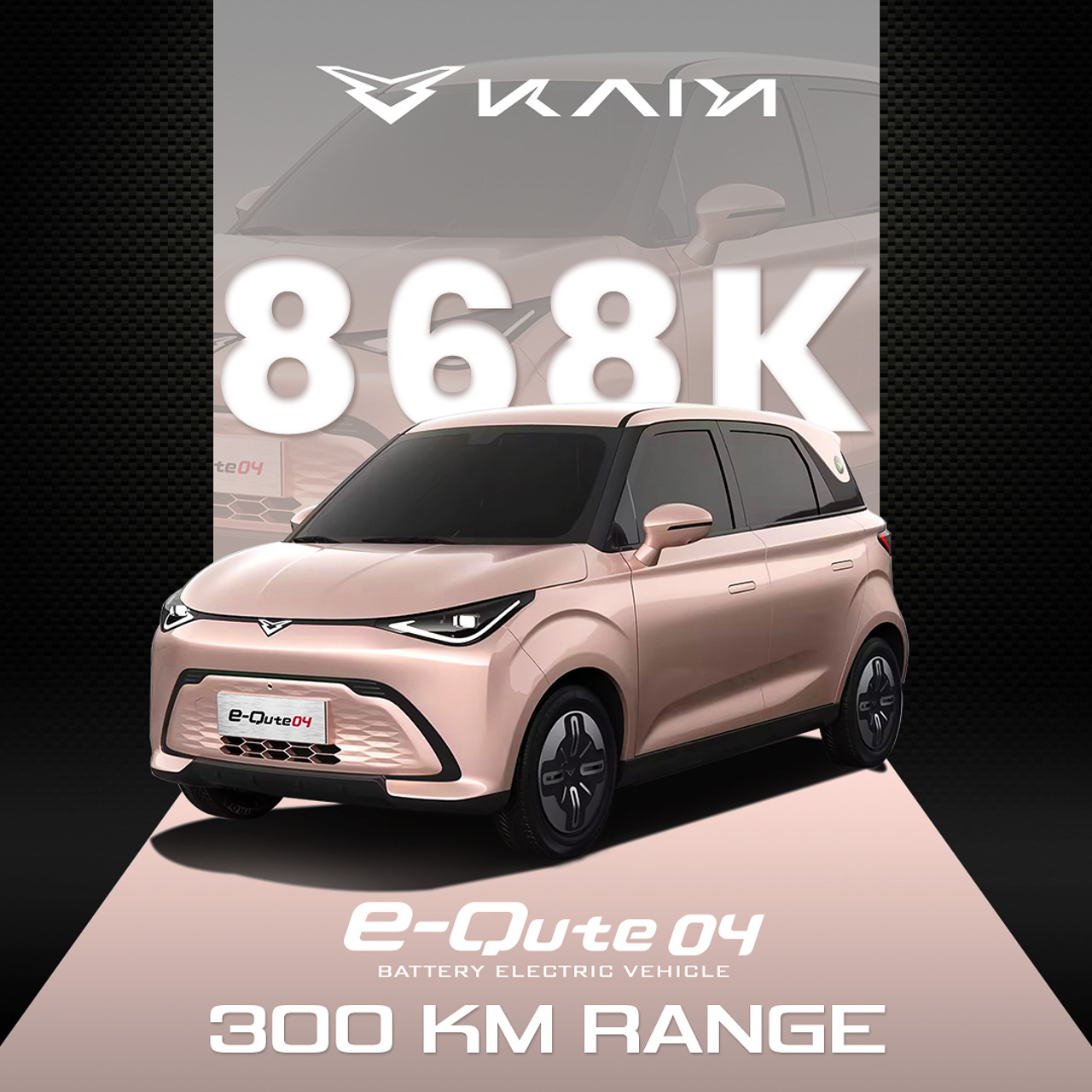 â— E-Qute 04 – A compact battery electric vehicle (BEV) crafted for urban mobility. It features an impressive 410 km range, making it the longest-range EV under ₱1 million in the Philippines.