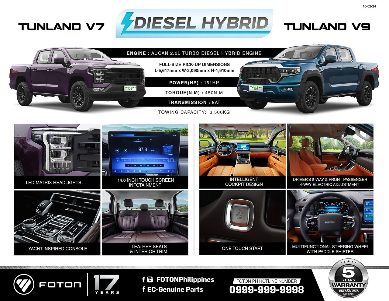 “We're excited to let the public take an up close and personal look at our new Tunland V7 and V9 pickups, which will set new size, luxury, performance, and fuel-efficiency benchmarks in the lifestyle pickup truck segment,” said Levy Santos, FMPI General Manager.