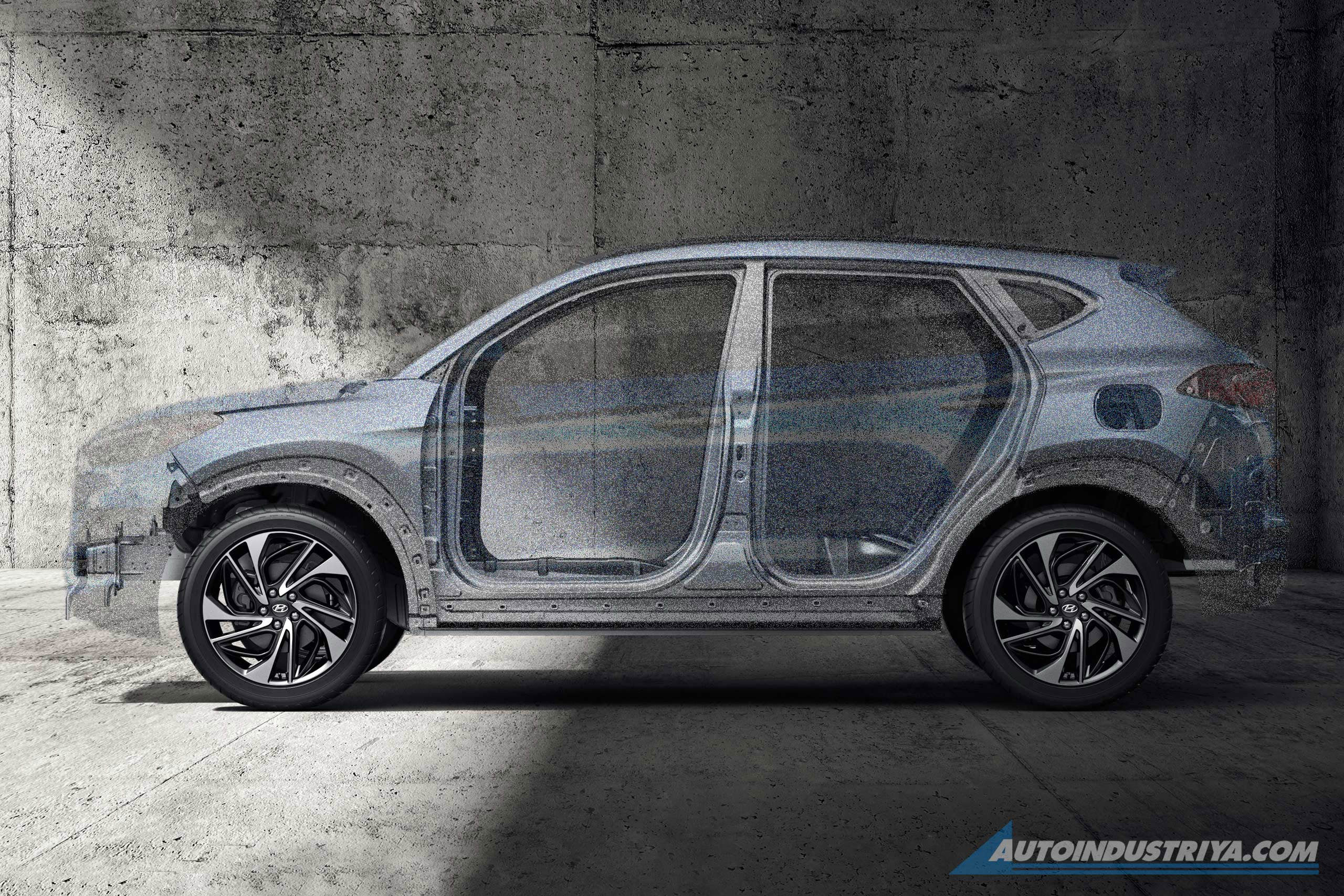 Combined with Hyundai's monocoque frames that are designed for maximum strength, the base of Hyundai's new generation of vehicles like the Tucson and Santa Fe, the latter using 68% AHSS, are much stronger than before but weighs less.