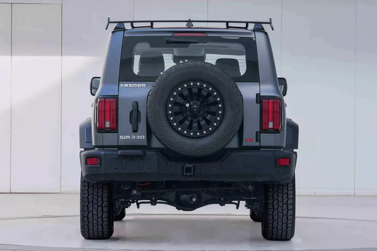 Style-wise, the Tank 330 looks the same as the Tank 300. However, the V6-powered version is based on the Frontier Limited Edition model which gives it a new front bumper, a black bull bar, beadlock alloy wheels wrapped in mud-terrain tires, rock sliders, a roof spoiler, and a Tank “330” badge on the tailgate.