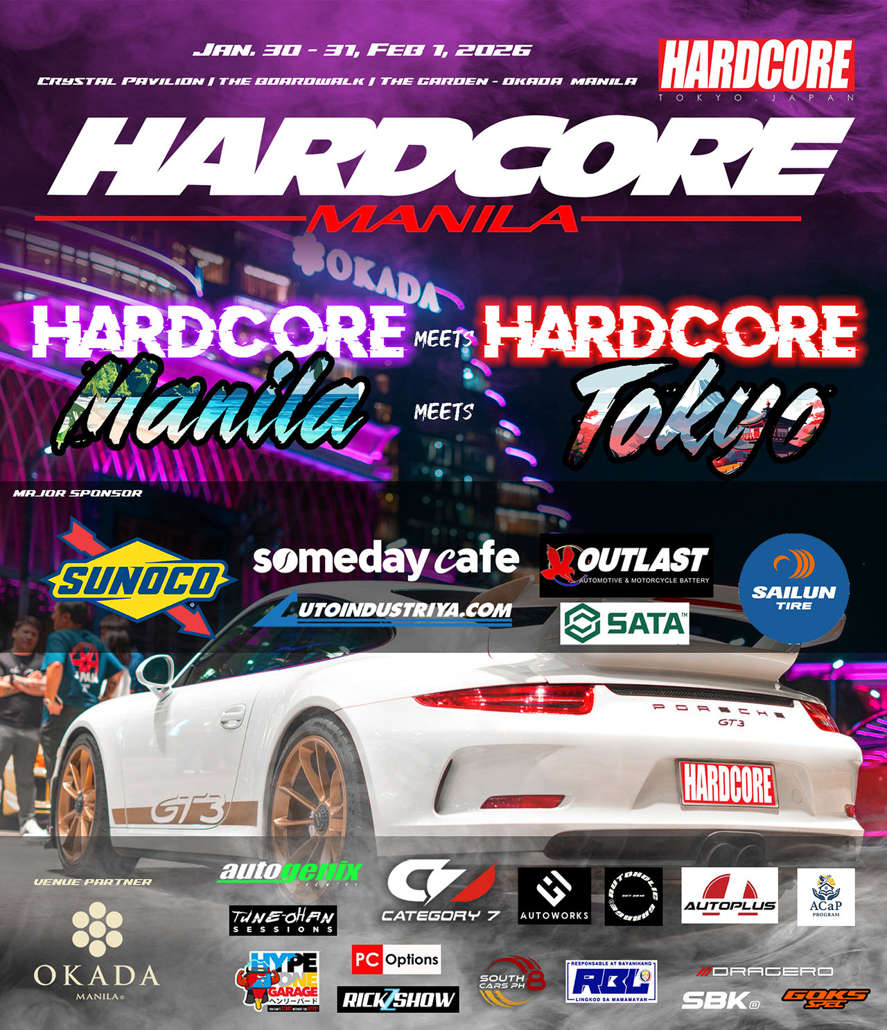 Mark your calendars from January 30 to February 1, 2026, as Hardcore Manila presents three days of authentic car culture and pure adrenaline, coming together for an extraordinary experience no car enthusiast can afford to miss at Okada Manila, the official venue partner.
